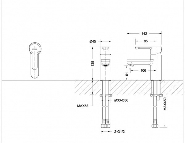 Управление - однорычажное. Крепление - на раковину. Длина излива - 106 мм. Дополнительные функции: Экономия расхода воды. Механизм - керамический картридж |