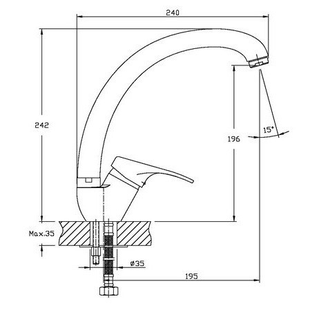 Управление - однорычажное. Крепление - на мойку. Длина излива - 195 мм. Механизм - керамический картридж |
