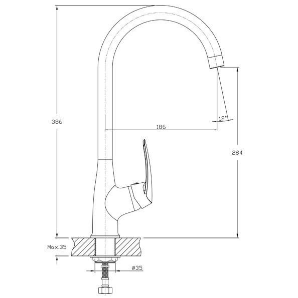 Управление - однорычажное. Крепление - на мойку. Длина излива - 186 мм. Механизм - керамический картридж |