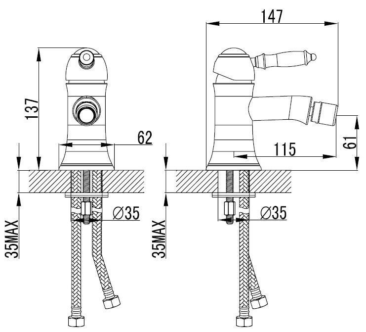 Управление - однорычажное. Крепление - на биде. Длина излива - 115 мм. Механизм - керамический картридж |
