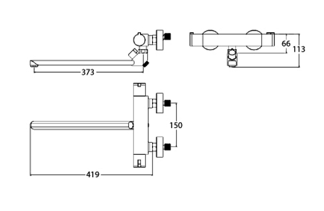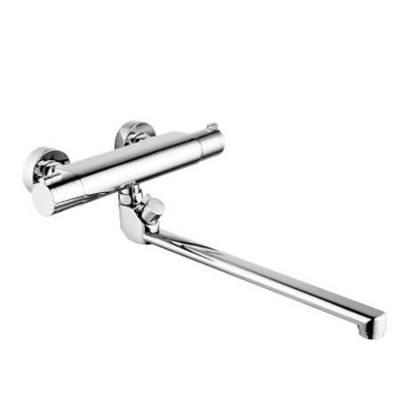 Управление - термостат. Крепление - на стену. Длина излива - 350 мм. Дополнительные функции: Душевой режим. Механизм - термостатический картридж |