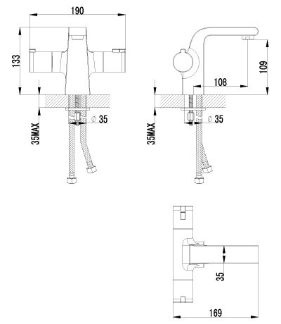 Управление - термостат. Крепление - на раковину. Длина излива - 108 мм. Механизм - термостатический картридж |