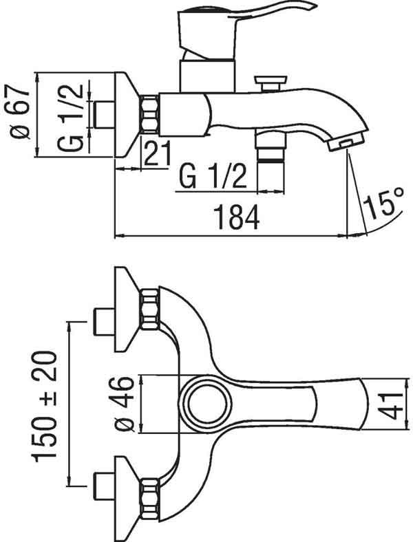 Управление - однорычажное. Крепление - на стену. Длина излива - 184 мм. Механизм - керамический картридж |