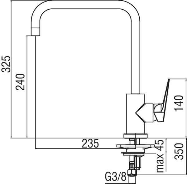 Управление - однорычажное. Крепление - на мойку. Длина излива - 235 мм. Механизм - керамический картридж |