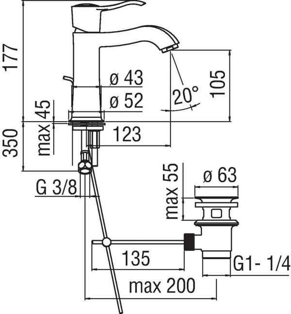 Управление - однорычажное. Крепление - на раковину. Длина излива - 123 мм. Механизм - керамический картридж |