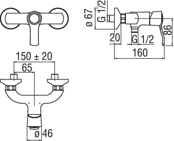 Управление - однорычажное. Крепление - на стену. Механизм - керамический картридж |
