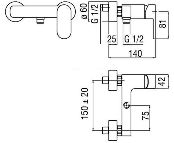 Управление - однорычажное. Крепление - на стену. Механизм - керамический картридж |