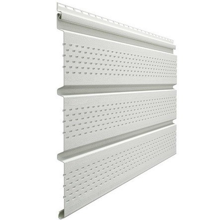 Софит Docke – это виниловая панель, предназначенная для отделки горизонтальных поверхностей: фронтонов, карнизов, потолков открытых террас и т.д. Особенностью софитов является наличие перфорации для правильной вентиляции подкровельного пространства и предотвращения попадания в деревянные конструкции насекомых и вредителей. Помимо функции защиты и проветривания, софиты помогут придать зданию законченный вид, скрыть места переходов от вертикальных поверхностей к горизонтальным. Длина профиля – 3,0 м Рабочая ширина – 305 мм Рабочая площадь – 0,92 м² Преимущества виниловых софитов Döcke неоспоримы. Это удобство использования, легкий вес, широкая сфера применения, высокая механическая прочность и стойкость к атмосферным осадкам. Практически полное отсутствие необходимости в уходе в течение всего срока службы. Монтаж подкровельных софитов можно осуществить своими силами в короткий срок. Используя оригинальные аксессуары для отделки фасада, вы не только получите профессиональный результат, но и обеспечите себя десятками свободных от ремонта часов в будущем. Достаточная естественная вентиляция подкровельных пространств является необходимым условием долгосрочной правильной эксплуатации загородных строений. Даже обработанные антисептическими составами деревянные конструкции могут быть подвержены намоканию и гниению без эффективного проветривания.