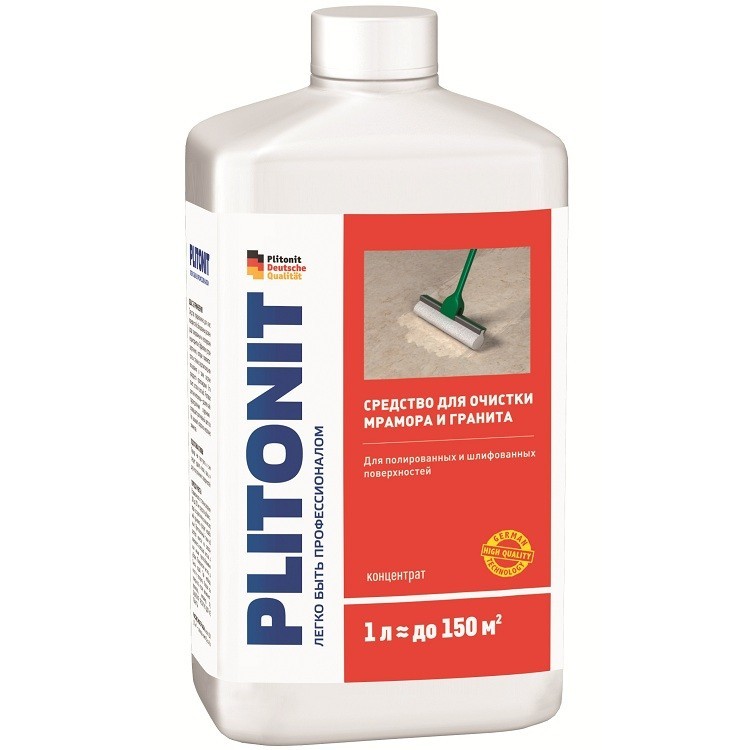 Средство очистки Plitonit является идеальным средством для очистки натурального камня, такого как: мрамор и гранит (пиленый, полированный и шлифованный). Продукт удаляет загрязнения природного происхождения (птичий помет, остатки листьев, налеты), а также загрязнения, появляющиеся вследствие ежедневного использования поверхностей. Основа: поверхностно-активные вещества, антикоррозионные добавки. Порядок работы. Прежде чем приступить к очистке, следует удалить песок, пыль, мох и другие загрязнения с поверхностей. В зависимости от степени загрязнения добавить от 100 до 200 мл средства в 5 л воды (в случае очень сильных загрязнений применять средство неразбавленным). Приготовленный таким образом раствор распределить по поверхности и чистить щеткой или другими приспособлениями для уборки. Смыть водой. При необходимости процедуру повторить. Тщательно вымытую поверхность после высыхания можно пропитать. Расход материала составляет около 100 мл/15 м2 — расход может быть выше в зависимости от степени загрязнения и впитывающей способности поверхности. Внимание. Беречь от детей. Не допускать замораживания средства. Хранить в закрытой заводской упаковке. Продукт годен 24 месяца с даты производства. Материалы Плитонит постоянно улучшаются, в связи с чем приведенные описания продуктов могут быть изменены. Перед использованием продуктов необходимо ознакомиться с информацией, размещенной на упаковке.
