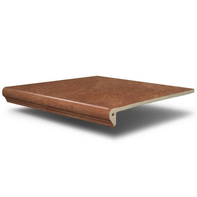 Ступень фронтальная Koblenz Florentiner-Stufe Brown имеет формат полноразмерной ступени с фигурным носиком типа Флорентинер. Флорентийские ступени не зря получили свое название: они отличаются невероятной изысканностью за счет аккуратного закругленного кантика, напоминающего элегантный стиль эпохи Возрождения. Глазурованная клинкерная керамика по DIN EN 14411 AIb от SDS Keramik — это высокая прочность, идеальная морозостойкость, низкое водопоглощение и антискольжение R10. Размер ступени 32x31 см, толщина 9,5 мм. Изнаночная сторона плиток имеет рельефное нанесение для наилучшего коэффициента сцепления с основанием. Серия Koblenz — экструдированная керамика, не требующая специального ухода и надежная в эксплуатации. Этот клинкер обладает высокой прочностью и противоскользящим покрытием. Созданная по образу натурального камня, серия Koblenz отражает в себе все многообразие природы через подлинную текстуру и пластичные линии. Ее спокойный и невозмутимый характер источает силу и уверенность первозданной каменной красоты. Серия высококачественной экструдированной керамики Koblenz – это материал, способный подарить гармонию широких цветовых палитр для Вашего дома и улицы. Преимущества клинкерной плитки SDS Keramik Koblenz: Высокий уровень сцепления с поверхностью: Канавки, на тыльной стороне плитки, делают нанесение клея на поверхность более качественным. Также, на первый взгляд ровная, тыльная поверхность плитки имеет микропоры, которые увеличивают качество сцепления изделия с основанием. Технология 3-D печати. Рисунок нанесен не только на горизонтальную поверхность элемента, но и на все его изгибы для полного соответствия натуральному камню. Рисунок и нескользящий слой нанесен на всю поверхность плитки, ступеней и декоративных элементов. Прочность. Преимущества данной технологии очевидны: экструдированная керамика обладает высоким уровнем морозостойкости, непревзойденной износоустойчивостью и высокой прочностью на изгиб и сжатие. Такой пол является самым прочным, способен выдержать любые нагрузки и часто используется при переходах из помещения на террасу, в сад, на улицу. Не выцветает в течении длительного времени. Абсолютно устойчива к воздействию УФ-излучения. Превосходные краски в течении длительного времени. Химическая стойкость. Продукция SDS Keramik устойчива к воздействию кислот и химикатов. Соответствие стандартам качества DIN EN ISO. Легкая очистка. Обжиг при температуре около 1200 градусов создаёт плотную поверхность. Такая поверхность препятствует проникновению загрязнений и плитка легко моется. Антистатический эффект. Продукция обеспечивает защиту от слабых и сильных электрических ударов, вызванных электростатическими зарядами. Вся продукция компании SDS Keramik соответствует важнейшим немецким и международным требованиям и нормам. Коллекции клинкера созданы как для внутренних пространств, так и для экстерьерных решений и отличаются высокой прочностью, имеет максимально плоскую поверхность и обладает точной геометрией изделия. Продукция SDS Keramik это 100 % натуральный продукт высшего качества. Используемое глиняное сырьё из экологически чистого немецкого месторождения района Westerwald.