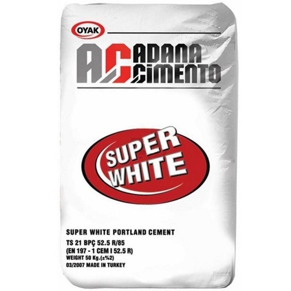 Белый цемент Adana М-500 Д0 – материал, который применяется при приготовлении растворов для финишной декоративной отделки поверхностей. Кроме этого, за счет отменных эстетических характеристик белые цементы находят свое применение при изготовлении разнообразных уникальных архитектурных изделий. В случае необходимости в цемент может быть добавлен пигмент с целью получения того или иного цвета раствора. Основные характеристики: белизна супербелого цемента – до 85%; нерастворяемый осадок – 0,12%; время начала схватывания – 160 минут; время окончания схватывания – 230 минут; прочность на сжатие по истечении 2-х суток – не менее 20 МПа. Полностью затвердевший раствор обладает высокой устойчивостью к негативному воздействию влаги, агрессивных минеральных соединений, температурных колебаний, резких изменений уровня влажности. Важный момент: при взаимодействии сухой смеси цемента с водой образуется раствор, при работе с которым необходимо соблюдать особую осторожность. В случае попадания раствора в глаза их следует незамедлительно промыть довольно значительным количеством воды.
