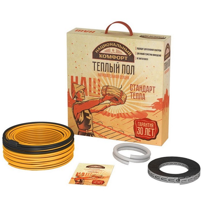 Основа электрических теплых полов Национальный комфорт БНК – нагревательные секции. Они предназначены, в основном, для обогрева полов для создания комфортного теплого пола и для обогрева самих помещений как дополнительный источник тепла. Нагревательные секции также используются для обогрева помещений как основной (единственный) источник тепла. Двухжильные нагревательные секции рекомендуется использовать для обогрева кухни, спальни, детских и других помещений где Вы проводите значительную часть времени. Основные характеристики: Двухжильная нагревательная секция БНК состоит из нагревательного кабеля, оснащенного с одной стороны соединительной муфтой и монтажным концом, а с другой - концевой муфтой. Уменьшенная толщина позволяет монтировать как в плиточный клей, так и в стяжку. Двухжильная конструкция нагревательного кабеля позволяет подавать питание с одного конца секции. Это упрощает ее раскладку и подключение к терморегулятору. Увеличена гарантия. Теплый пол кабельный должен подключаться к сети через терморегулятор (в комплект не входит) во избежание перегрева и выхода из строя. Кабель нагревательный, предназначенный для основного обогрева, должен занимать не менее 70 % от общей площади помещения. Высота потолков должна быть не более 4 м. Не используется один кабель для обогрева двух помещений. Любой теплый пол должен подключаться через УЗО (Устройство Защитного Отключения), номинальный ток срабатывания которого не превышает 30 мА. Мощность нагревательной секции выбирается из следующих соображений: для (дополнительного) комфортного обогрева – 130 Вт/кв.м для основного отопления – 150 Вт/кв.м Увеличение мощности на 1 кв.м. достигается путем уменьшения шага раскладки секции. Комплект поставки Нагревательная секция Монтажная лента для крепления кабеля к поверхности пола Монтажная трубка с заглушкой для датчика пола Инструкция по установке и эксплуатации