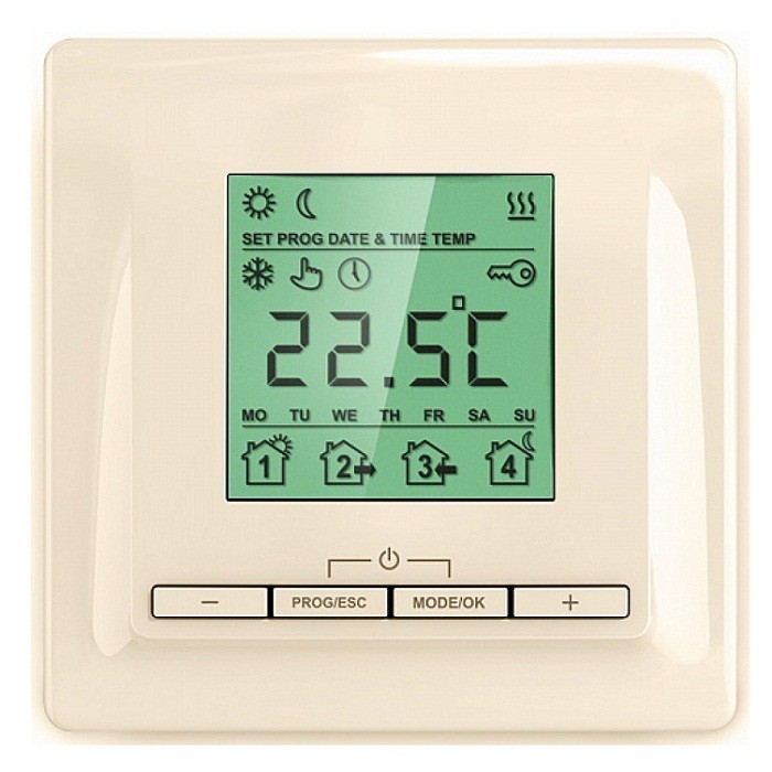 Терморегулятор Теплолюкс ТР 520 используется для поддержания температуры обогреваемой поверхности и обеспечивает рациональный расход электроэнергии. Терморегулятор поддерживает комфортную температуру обогреваемой поверхности в диапазоне от +5°С до +45°С. Для отображения информации в терморегуляторе ТР 520 используется жидкокристаллический дисплей. Терморегулятор Теплолюкс ТР 520 оснащен функцией программирования, что позволяет, основываясь на характеристиках помещения, заранее включать обогрев с таким расчетом, чтобы достигнуть комфортной температуры точно в заданное пользователем время. В приборе запрограммированы четыре события – «утренний подъем», «рабочий день», «возвращение вечером» и «время сна». Пользователь имеет возможность задать для каждого из событий уровень поддерживаемой температуры теплого пола (комфортный подогрев и экономия), а также временной интервал переключения между ними. Терморегулятор запоминает данные установки для каждого дня недели отдельно и включает подогрев в нужное время. Дополнительно в модели Теплолюкс ТР 520 реализованы режим постоянного поддержания заданной температуры и режим «антизамерзания». В случае длительного отсутствия людей дома использование режима "антизамерзания" позволит обеспечить в помещении минимальную положительную температуру. Корпус терморегулятора Теплолюкс ТР 520 выполнен из высококачественного пластика. Благодаря минимальному количеству деталей установка прибора значительно упрощена. Современный дизайн и компактная конструкция терморегулятора позволяют гармонично вписать его в любой интерьер.