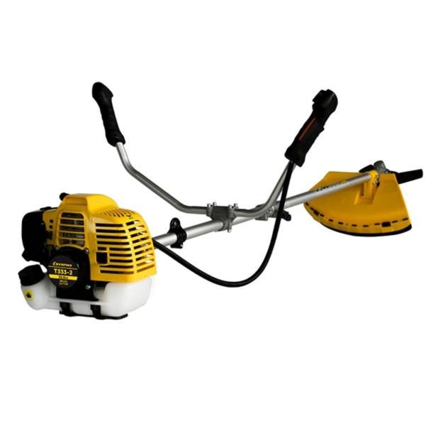 Триммер Champion T333-2 предназначен для работы на небольших участках, ухода за газонами. Незаменимым и для стрижки зелени в недоступных для обыкновенных косилок местах. Такими местами могут стать участки возле деревьев, кустов, вдоль дорожек, около садовой мебели. Мощность такого двигателя составляет 1,22 л.с. Объем цилиндра — 32,6 см. куб. Двухтактный двигатель с воздушным охлаждением. Топливный бак 0.95 л. Инструмент поставляется с триммерной головкой, диаметр лески которой 2,4 мм, металлическим ножом. Штанга у Champion T333-2 прямая и разъемная, чтo позволяет складывать агрегат для транспортировки. Система гашения вибрации обеспечивает продолжительную работу без нагрузки на руки.Прочный кожух защищает от вылетающих при работе из-под режущей головки мелких предметов и срезанной травы. Особенности триммера Champion T333-2: Воздушное охлаждение двигателя. Две режущие оснастки: триммерная головка и 3-х лопастной нож. Ширина кошения кордом/ножом 400/255 мм. Штанга прямая, разъемная. U-образная рукоятка. Защитный кожух. Система гашения вибрации. Основные характеристики: Мощность двигателя,(кВт) 0,9 Мощность двигателя, (л.с.) 1,22 Вес без режущей насадки, (кг) 6,7 Объем двигателя, (см.куб.) 32,6 Объем топливного бака, (л) 0,95 Тип рукоятки U-образная Вид штанги прямая Тип штанги разъемная Длина штанги, (мм) 1493 Толщина корда, (мм) 2,4 Нож, кол-во зубцов/диаметр/диаметр посадки, (мм) 3/255/25,4 Ширина кошения кордом/ножом, (мм) 400/255 Обороты холостого хода, (об/мин) 2800 Уровень вибрации на рукоятке, (м/с2) 15 Уровень мощности звука, (дБ) 120 Уровень звукового давления, (дБ) 102