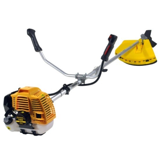 Бензиновый триммер Champion T433 представляет собой легкий ручной инструмент для скашивания травы и сорняков на дачном участке, который сочетает в себе практичную и удобную для работы конструкцию и хорошее качество комплектующих. Это производительный инструмент, оснащенный 2-тактным двигателем мощностью 1,7 л.с. Легкий старт, позволяет сократить усилия и время при запуске холодного двигателя. Объем топливного бака составляет 0,95 л, который следует заправлять 2-тактной смесью на основе бензина марки АИ-92, в которую добавляется соответствующее количество масла, предназначенное для двухтактных моторов с воздушным охлаждением. Режущими элементами триммера являются корд диаметром 2,4 мм для кошения травы, а таже диск диаметром 255 мм с тремя ножами. Это существенно расширяет возможности инструмента. Леской (кордом) подравнивают подрастающую траву газонов. Нож используют, когда необходимо избавиться от крепких сорняков на участке или срезать молодые кусты. Особенности триммера Champion T433: Оптимальное соотношение мощности и веса. Большой топливный бак. Надежное соединение штанги обеспечивает стабильную работу. Удобная U-образная рукоятка. Разъемная штанга позволяет легко перевозить и хранить триммер.