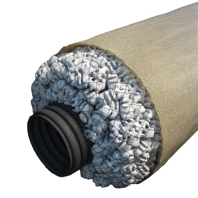 Дренажная труба Softrock D200/450 мм представляет собой эффективную дренажную систему без использования щебня, которая позволяет без особых трудозатрат и достаточно оперативно удалить с осушаемого участка грунтовую воду. Данная дренажная система состоит из перфорированной гибкой трубы, которая окружена изготовленным из пенополистирола наполнителем. Наполнитель зафиксирован технологической сеткой, предотвращающей рассыпание. Улучшенный проток воды в дренажной системе канализации обеспечивается разработанными по специальной технологии канальцами из пенопласта. Сами трубы полностью готовы к укладке. Они обернуты геотекстилем, защищающим систему от заливания. По сравнению с дренажами на основе обычного щебня, подобная конструкция позволяет увеличить эффективность на 20–50 %. Основные сферы применения дренажной системы Softrock: Дренаж фундамента. Основная функция дренажно-распределительной системы — недопущение попадания влаги в основание постройки. Беструбный дренаж размещается на расстоянии 0,45 м от поверхности земли, вдоль наружной стенки фундамента. Он эффективно выполнит перехват и осуществит отвод воды в систему канализации, расположенную ниже и оснащенную внутренней трубой. Дренаж септика. В качестве элемента септика закрытая дренажная система Softrock представляет собой комплекс трубопроводов, оснащенных сливными отверстиями. Прокладка выполняется на глубине до 2 м. Дренаж подвала. Системы канализации Softrock — идеальное решение для отвода воды из подвалов. Отвод происходит к колодцу или точке сброса, после чего воду можно удалить при помощи насоса. Прокладку такой системы рекомендуется выполнять в траншеях шириной около 30 см. Дренаж стока крыши. Водосточная система может применяться для отвода дождевой воды от фундамента или подпорной стенки объекта. Существуют конфигурации с выводом воды как на поверхность, так и под землей. Преимущества применения дренажной системы Softrock: Легкий вес и гибкость. Можно установить самому, без помощников. Возможна прокладка дренажа вокруг деревьев и препятствий. Водоотвод на 40% эффективнее. Вода не будет стоять на участке. Геосинтетический наполнитель дает воде свободно опадать внутрь дренажных труб. Прочный и устойчивый. Выдерживает более 2,5 м земли сверху, а также проезд машин весом до 25 т. Устойчивый к любым климатическим условиям. Не нужно спецтехники. Легкость монтажа, уменьшение трудозатрат. Укладывается самостоятельно одним человеком. Участок останется чистым. Нет грязи, щебня, спецтехники, нет повреждения газонов или ландшафта при монтаже участка. Надежность 100 лет. Закрытая дренажная система не засоряется, предохраняет от заиливания, возможно ее повторное использование.