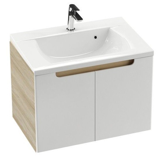 Тумба под раковину Ravak SDD Classic 800 X000001095 латте/белый глянец спроектирована для умывальника того же размера и серии. Она оборудована дверью с открывающимся крылом и большим складским пространством высотой 40 см. Крепится на стене, вы не сможете использовать регулируемые ножки. Классическая форма шкафа с удобным способом открытия двери. Удобная ручка облегчает открывание, внутренняя часть обеспечивает достаточное пространство для хранения. Поставляется в собранном виде, включая монтажный комплект (винты, петли, жалюзи). В мебели для ванных комнат Classic дизайнеры воплотили идею простоты и практичности в их сущностной форме. Скромные внешние линии подчеркивает аккуратно вырезанная овальная ручка в стиле минимализма. Технические характеристики: материал: пропитанная доска MFPB и МДФ цветовое исполнение корпуса: латте цветовое исполнение дверей: белый глянец Каждая модель шкафчика Classic выполнена таким образом, чтобы могла обеспечивать как можно больше места для хранения, но при этом не занимать слишком много места в самой ванной комнате. Приятная форма и специальная тщательная обработка AMT (Anti Moisture Treatment) облегчают уход и способствуют длительному сроку службы. Дверцы покрываются двумя слоями лака, а затем окрашиваются чрезвычайно стойкой краской. Благодаря этому они водостойкие и поддаются влажной уборке. Легкому уходу за мебелью способствует отсутствие ручек и возможность повесить ее на стену для безпрепятсвенной уборки пола ванной комнаты. Все шкафчики для ванных комнат оснащены качественной фурнитурой с масляными амортизаторами Blum, подвесной системой Hettich и петлями с доводчиками Salice. Эта высококачественная фурнитура обеспечивает беспроблемное открывание и закрывание дверец на протяжении всего срока службы мебели. Преимущества мебели для ванных комнат Ravak Classic: Сочетание многолетнего опыта, современных технологий и первоклассных материалов обеспечивают высокое качество. Высокое соответствие стилю. Красивая мебель для ванной комнаты Classic по цветовому решению и формам строго соответствует классическому направлению в дизайне. Идеальное сочетание габаритов и форм. Предметы не выделяются на общем фоне, отлично вписываются в общую картину. Ravak Классик выгодно приобрести при оформлении совмещенных санузлов. Простая установка; Специальная влагостойкая пропитка; Простой уход. Для дизайна ванной комнаты мы рекомендуем комбинировать тумбу SDD Classic с другими продуктами Classic (умывальники, зеркала, боковые панели SB Classic), смесители и другие изделия Ravak.