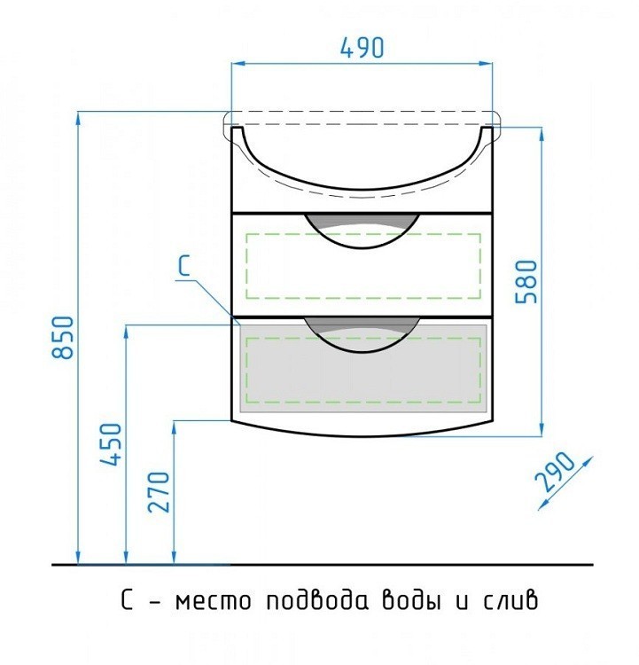 Количество ящиков - 2 шт. Раковина - да.. Покрытие корпуса - Пленка |