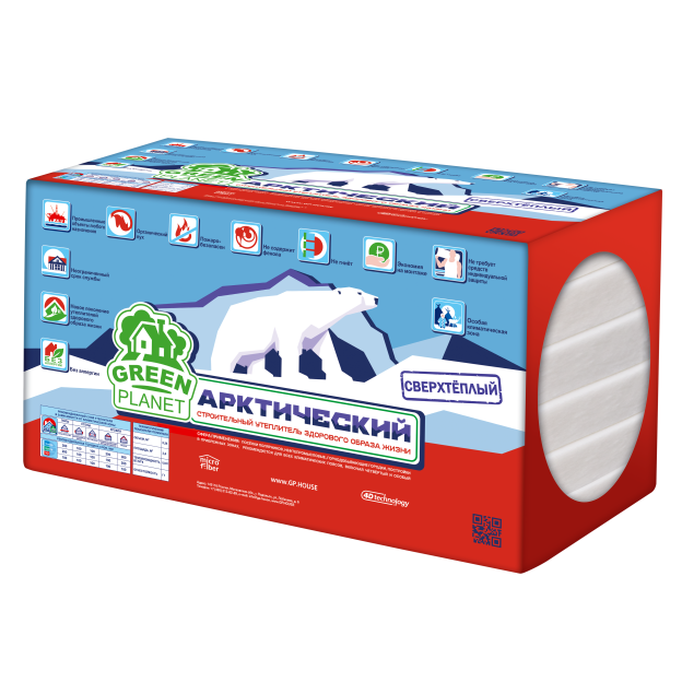 Green Planet Арктический – сверхтеплый полиэфирный утеплитель для теплоизоляции стен, полов, перекрытий и кровли. Он создан по технологии MicroFiber, это 100% экологически чистый продукт. Не впитывает влагу, не оседает со временем, не рассыпается, гипоаллергенный, свободен от фенола. Специальные волокна Micro Fiber необычайно хорошо сберегают тепло и создают уют в доме. Вьюга, вечная мерзлота, льды и лютая северная стихия – всё это не страшно вам с утеплителем Арктический. Отличные показатели по теплопроводности, технология микроволокон, повторяющих структуру натурального пуха, защитят вас от холода в любых климатических условиях, даже самых суровых, это –инновационный сверхтёплый утеплитель. Материал легко и быстро монтируется на любые поверхности. Применяется для утепления малоэтажных домов и строений. Рекомендуется для особо суровых погодных условий и всех климатических поясов, включая IV и особый, а также прибрежных зон. Преимущества применения утеплителя Green Planet Арктический: Произведен без применения клея и фенола, гипоаллергенен, 100% экологически чистый продукт. Выдерживает экстремально низкие температуры. Подходит для любых климатических зон. Отличная эластичность и способность к монтажу без зазоров и мостиков холода. Дышащий материал утеплителя. 100% сопротивление гниению при намокании. Экономия на отоплении и охлаждении дома. Отсутствие усадки.