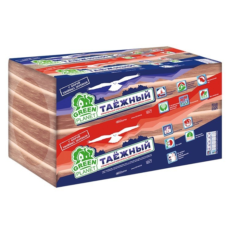 Утеплитель Green Planet Таежный – это уникальный материал с добавлением оригинальной коры и натуральными древесными волокнами. Он обладает антибактериальными свойствами и поддерживает здоровый микроклимат в доме. Кора имеет в своем составе специальные вещества, защищающие древесину, забирая излишнюю влагу. Утеплители из натуральных материалов «дышат» и позволяют регулировать уровень влажности в помещении, создавая при этом, особый микроклимат. Они поглощают из воздуха влагу до 29% от своего веса и снова отдают влагу, не теряя при этом своих изоляционных свойств. При применении утеплителей из натуральных материалов важно соблюдать три основные правила: Соблюдать золотое правило паропроницаемости. Соблюдать технологию монтажа внешних и внутренних мембран. Использовать утеплитель правильной плотности. Преимущества утеплителя Green Planet Таежный: Содержит натуральные древесные волокна. Дышащий материал, обеспечивает благоприятный микроклимат. Не боится воды, не гниет. Антистатические свойства. Экологически чистый, не содержит фенола. Антисептик. Не вызывает аллергии. Не требует средств индивидуальной защиты. Скорость и удобство монтажа. Эффективный срок службы - 100 лет.