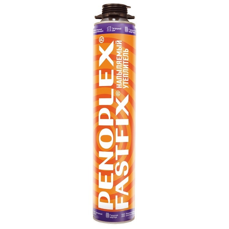 Утеплитель Пеноплэкс Fastfix может быть нанесен на любые поверхности, включая вертикальные, а также поверхности с отрицательным наклоном (внутренние плоскости скатов крыш и т.п.). Идеально подходит для небольших помещений. Может также применяться в качестве вспомогательного утеплителя для нанесения на неровные и геометрически неправильные поверхности, а также места, где технологически тяжело применить листовые утеплители. Особенности утеплителя Пеноплэкс Fastfix: Для наружных и внутренних работ. Благодаря более мелкоячеистой структуре обладает меньшей теплопроводностью, чем монтажная пена и лучшими утепляющими свойствами. Объем выхода после подъема шапки – до 55 литров. Подъем одного слоя до 2,5 см. Рекомендуется наносить в несколько слоев. Второй слой наносить только после отверждения первого. Температурный диапазон применения – от -10 до +40 °С (при температуре баллона от +10 до +35 °С). Температурный диапазон эксплуатации – от -45 до +90 °С. После полимеризации – химически нейтрален, не выделяет ядовитых соединений. Устойчив к плесени и грибам. Отличная адгезия ко всем поверхностям, за исключением фтор-пласта, а также фольгированных покрытий, битумизированных композиций, полиэтиленовых пленок, силиконовых покрытий и тефлона. Не содержит озоноразрушающих веществ и растворителей. Преимущества утеплителя Пеноплэкс Fastfix: Простое и удобное утепление стен, перекрытий, крыш, подвалов, дверей и других конструкций. Идеально подходит для теплоизоляции геометрически неправильных поверхностей. Для герметизации щелей между элементами другой теплоизоляции. Напыление на листовые материалы увеличивает звукоизоляцию.
