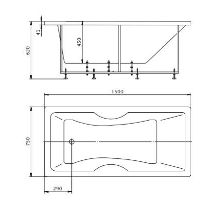Ванна Aquatek Феникс акриловая с гидромассажем, плоские форсунки 150х75 см
