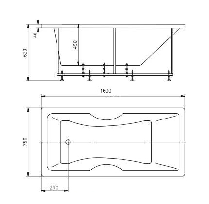 Ванна Aquatek Феникс акриловая с гидромассажем,премиум форсунки 160х75 см