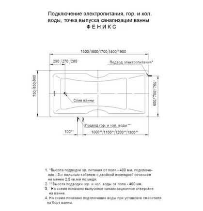 Ванна Aquatek Феникс акриловая с гидромассажем,премиум форсунки 180х85 см