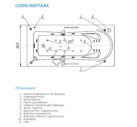 Управление - пневматическое. Зона гидромассажа - Гидромассаж боковой. Количество форсунок для бокового массажа - 6. Количество человек - 1 |