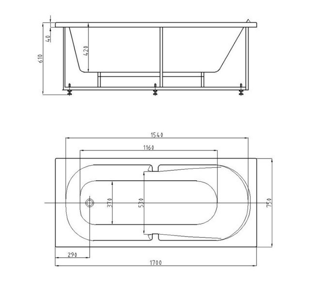 Ванна Aquatek Лея акриловая с гидромассажем, премиум форсунки 170х75 см