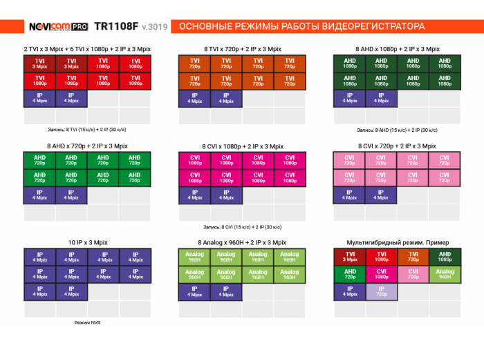 NOVIcam PRO TR1108F представляет собой 8ми канальный видеорегистратор, созданный на основе новейшей технологии TVI. Данная технология позволяет использовать высокочастотный видеосигнал с разрешением HD, Full HD и 3Мп, и передавать его на расстояние до 500 метров. Благодаря высокопроизводительному процессору и профессиональной операционной системе, регистратор гибко настраивается под необходимые условия и работает одновременно с TVI, AHD, CVI, аналоговыми и IP камерами. Возможность настройки качества записи по событиям и запись видеоданных в формате H.265+ позволяет экономить место на жёстком диске (поддерживается 1 HDD до 8 Tб). Функции удалённого одновременного подключения до 128 клиентов и облачный сервис P2P позволяют легко подключиться и настроить видеорегистратор пользователям, где бы они не находились. Наличие аудиовходов позволяет подключать микрофоны для улучшения системы безопасности. Совместимость программного обеспечения PRO серии позволяет объединять аналоговые, TVI и IP регистраторы NOVIcam PRO в единую сеть наблюдения с возможностью удалённой настройки и управления. Видеорегистратор NOVIcam PRO TR1108F управляет видеокамерами TVI с UTC меню через кабель видеосигнала, что облегчает настройку системы видеонаблюдения и не требует дополнительной прокладки кабелей. NOVIcam PRO TR1108F позволит модернизировать уже установленную систему видеонаблюдения до высокого разрешения, используя одновременно TVI, AHD, CVI, IP и аналоговые камеры и станет незаменимым помощником по обеспечению безопасности. Видеорегистратор идеально подходит для использования в магазинах, банках, ресторанах, коттеджных поселках, автостоянках, торговых центрах, аэропортах, стадионах, складах и других помещениях больших и средних площадей.