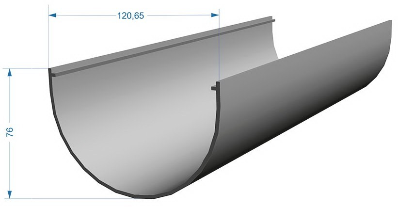 Стойкость к ультрафиолету - да. Диаметр желоба - 120 мм. Диаметр трубы - 85 мм |