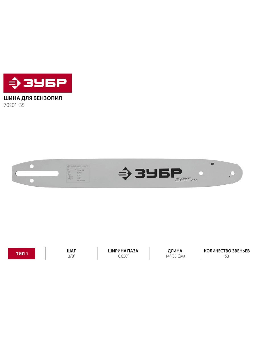 Шина ЗУБР для бензопил, 350 мм, тип 1, 70201-35