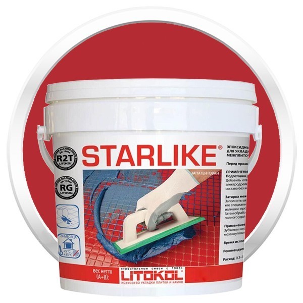Затирка эпоксидная для швов Litokol Litochrom Starlike C.450 Rosso Oriente - двухкомпонентный кислотостойкий эпоксидный состав для укладки стеклянной мозаики, плитки и затирки межплиточных швов с шириной шва от 1 до 15 мм. Компонент А представляет собой смесь эпоксидной смолы, кремниевых наполнителей и добавок. Компонент B является отвердителем. Цветные затирки для плитки Litochrom Starlike позволяют воплотить в жизнь любой дизайнерский изыск. Применяются для выполнения облицовки: полов и стен, в том числе в ванных комнатах и душевых кабинах; полов с подогревом; кухонных рабочих поверхностей; террас и балконов. Подходит для помещений пищевой промышленности и общественного питания. Все цвета коллекций Starlike предназначены для использования как внутри, так и снаружи и имеют защиту от ультрафиолетовых лучей, предотвращая таким образом поверхностное пожелтение, вызванное ультрафиолетовым облучением. Характеристики затирки для плитки Litokol Litochrom Starlike: постоянство цвета на всех оттенках. Строительный материал не выцветет, затирка Litochrom Starlike не восприимчива к в воздействию УФ – излучения; устойчивость к пятнам и водонепроницаемость (не впитывает воду, не пачкается, моется простой водой); защита от образования плесени и грибка; исключительная механическая прочность и устойчивость к истиранию; в 9 раз превышает по эластичности обычные цементные затирки, не трескается, не царапается; отличная устойчивость к резким перепадам температур: от -20°С до +100°С; отличная химическая устойчивость к кислотам, щелочам и агрессивным веществам; полное отсутствие трещин или раковин после затвердения. Сфера применения затирки Litokol Starlike: клей для мозаики (стеклянной, керамической, металлической, деревянной) и затирки межплиточных швов при облицовке мозаикой стен и полов в ванных комнатах, душевых кабинах, бассейнах; для затирки межплиточных швов при облицовке керамической плиткой, керамогранитом, натуральным камнем, агломератом стен и полов в ванных комнатах, душевых кабинах, бассейнах; плиточный клей для воплощения дизайнерских решений при изготовлении кухонных столешниц, мозаичных панно, элементов интерьера и т. п. Рекомендации по применению: Наносится при температуре окружающей среды от +12 °С до +30 °С. При температуре от +8 °С до +12 °С становится вязким и трудно наносится. Время высыхания в этом случае значительно увеличивается. Своевременно производить удаление излишков с поверхности, так как после высыхания его можно удалить только механическим способом. Не пользоваться для работы с плиткой «котто тоскана». При повышении температуры окружающей среды время схватывания уменьшается. Не может использоваться для затирки швов в резервуарах с химическими веществами и составами, контакт с которыми допустим непродолжительное время. Не использовать для обработки поверхностей, подверженных воздействию олеиновых кислот. Не добавлять в затирку воду и растворитель.