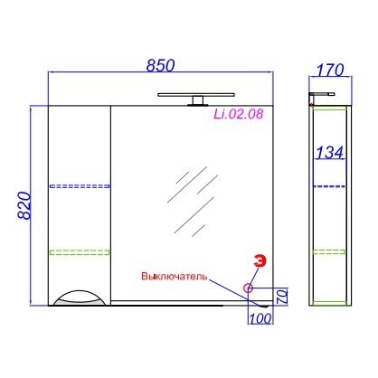Зеркало Aqwella Лайн 85 со шкафом 850x820х170 мм