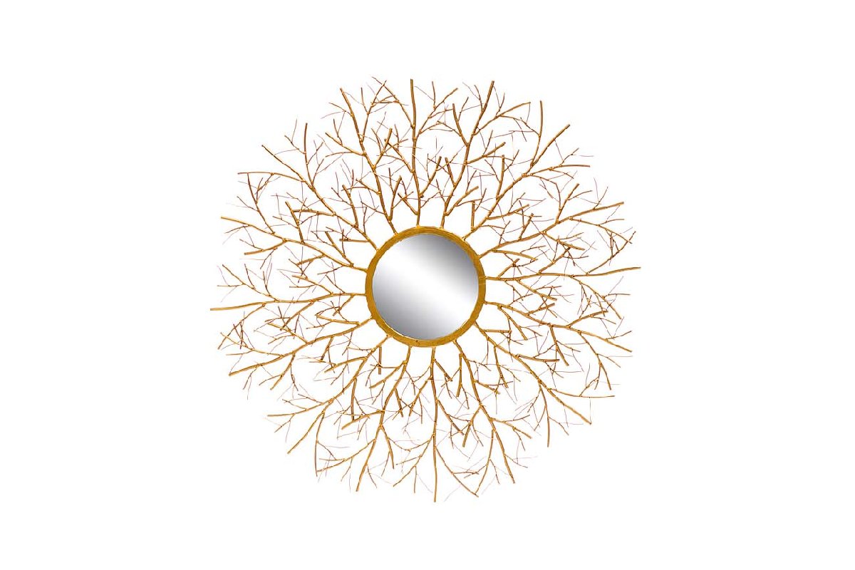 Необычное декоративное зеркало в обрамлении тонких золотых веточек дарит позитивные эмоции и пробуждает фантазию. Оно напоминает зимнее солнце, просвечивающее сквозь крону деревьев, замерзший пруд в окружении деревьев или золотую новогоднюю снежинку. С этим декоративным зеркалом комната или прихожая наполнятся светом и теплом. Ваши гости будут в восторге от такого изысканного и оригинального интерьерного украшения! Декоративное зеркало также может стать прекрасным подарком или сувениром.