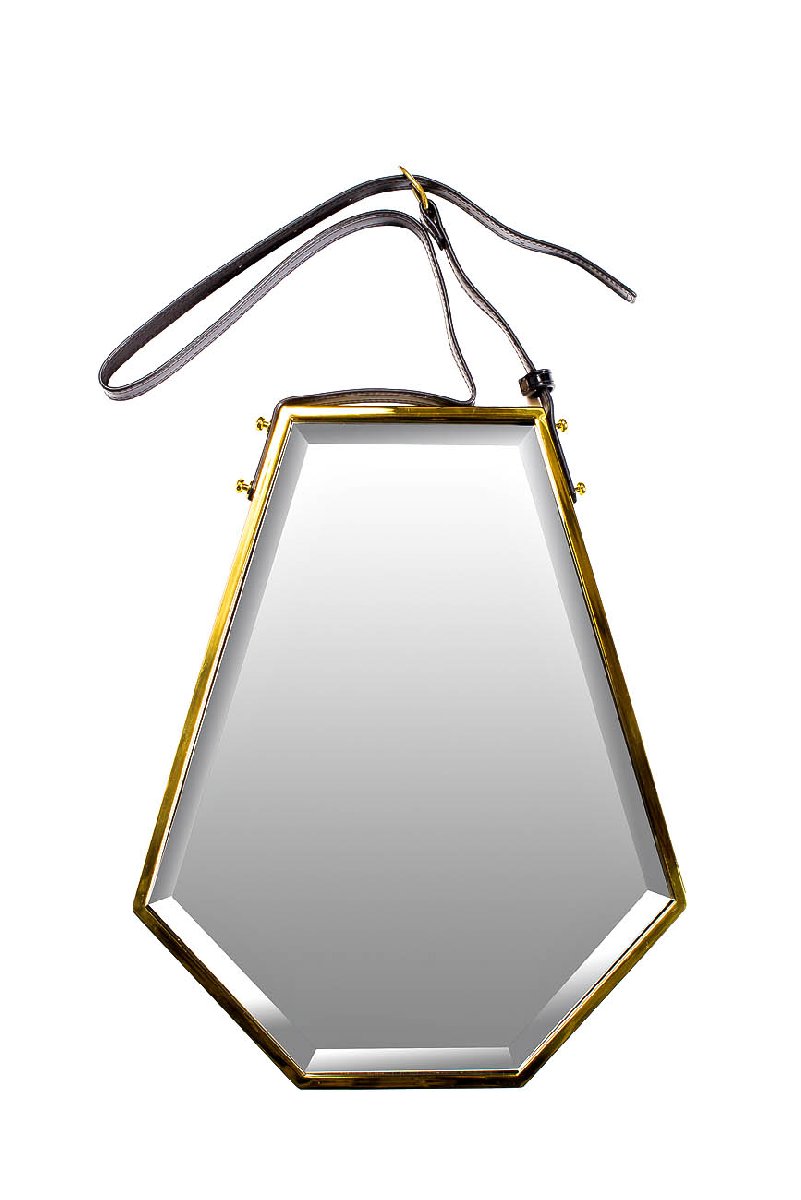 Зеркало, мдф, металл цвет золото, кожаный ремень |