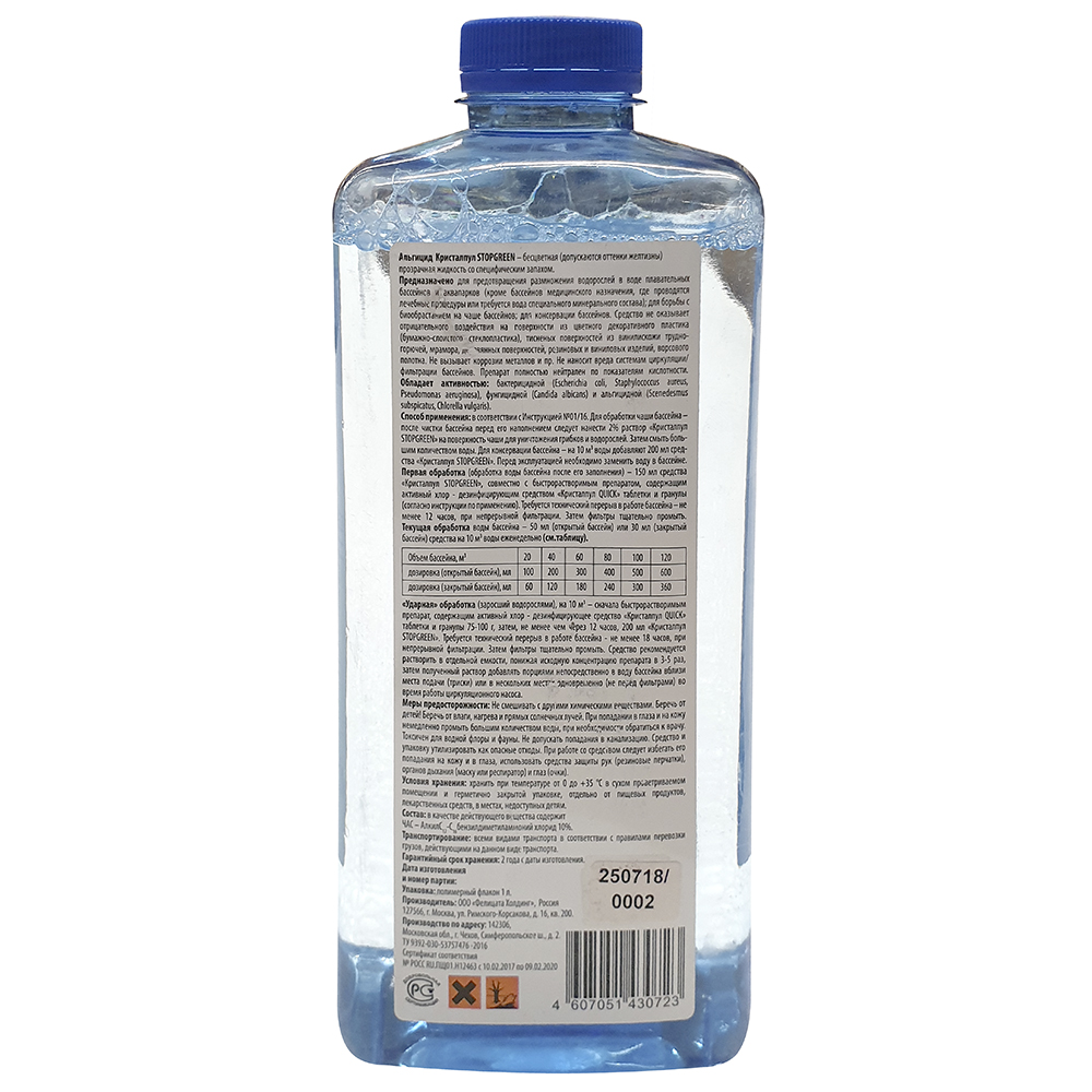 Химическое средство предназначено для предотвращения роста водорослей в воде плавательных бассейнов и аквапарков.