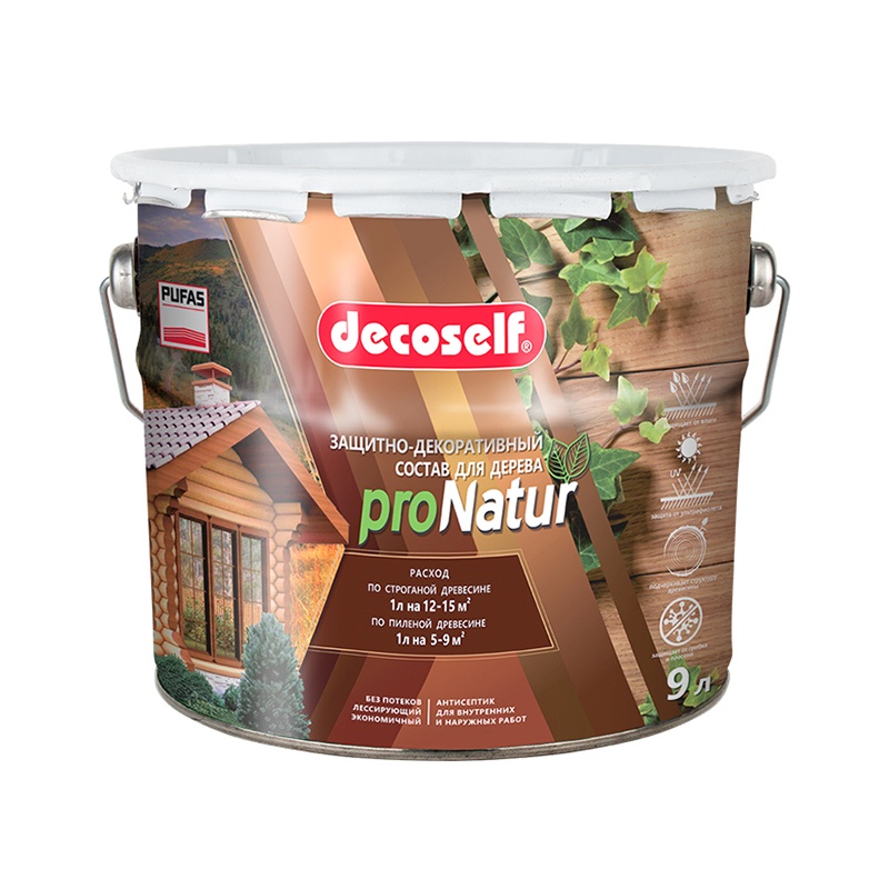 Антисептик Pufas Decoself лессирующий для дерева тик 9 л