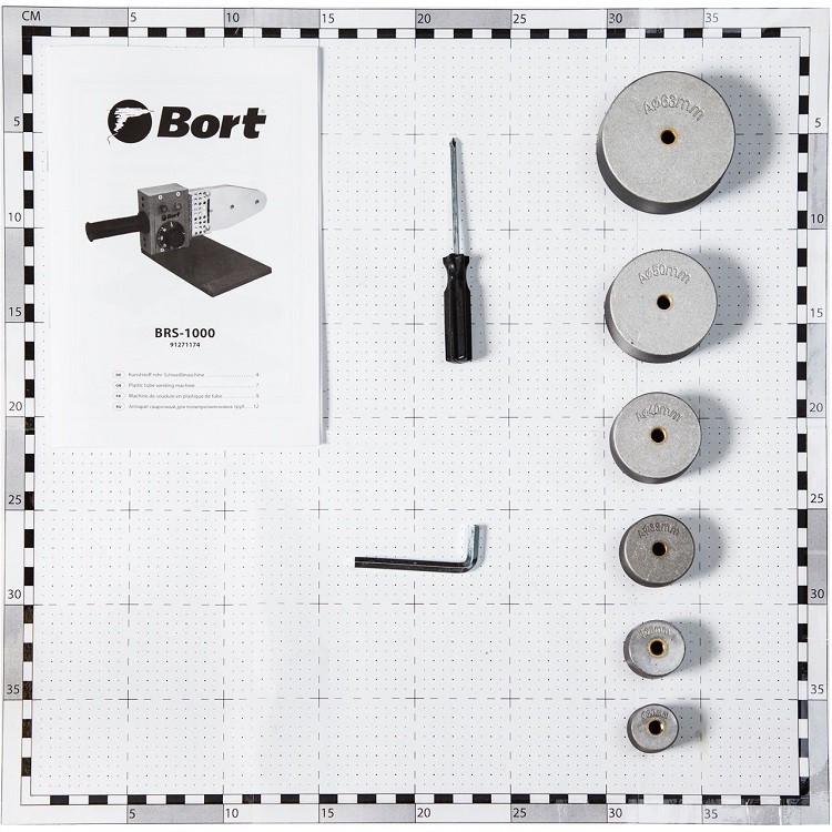 Аппарат для сварки труб Bort BRS-1000 предназначен для быстрого и простого соединения отрезков полипропиленовых труб при помощи нагрева до температуры плавления. С ним можно забыть о металлических и ржавых трубах, которые текут. Для работы с BRS-1000 не требуется специальных навыков и дорогостоящего специального оборудования. Никаких слабых соединений, все углы, тройники и тд. запаиваются сварочным аппаратом наглухо. Аппарат работает от электросети и не требует перерывов для подзарядки. Рабочая температура инструмента регулируется от 0 до 300 оС. Время нагрева составляет 10 минут. В комплекте имеется устойчивая металлическая подставка, сменные насадки для основных размеров труб (20, 25, 32, 40, 50, 63 мм), ключ для смены насадок. Комплектация: Комплект насадок - 1 шт. Отвертка - 1 шт. Ключ шестигранный - 1 шт. Винты - 2 шт. Подставка - 1 шт.