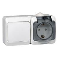 Блок Schneider Electric ЭТЮД (белый, открытой установки) предназначен для применения в сетях до 250В, состоит из розетки на 16А со шторками и без заземления и одноклавишного выключателя на 10А. Удобен в применении и отлично подходит для ванной комнаты (IP44). Сделано в России.