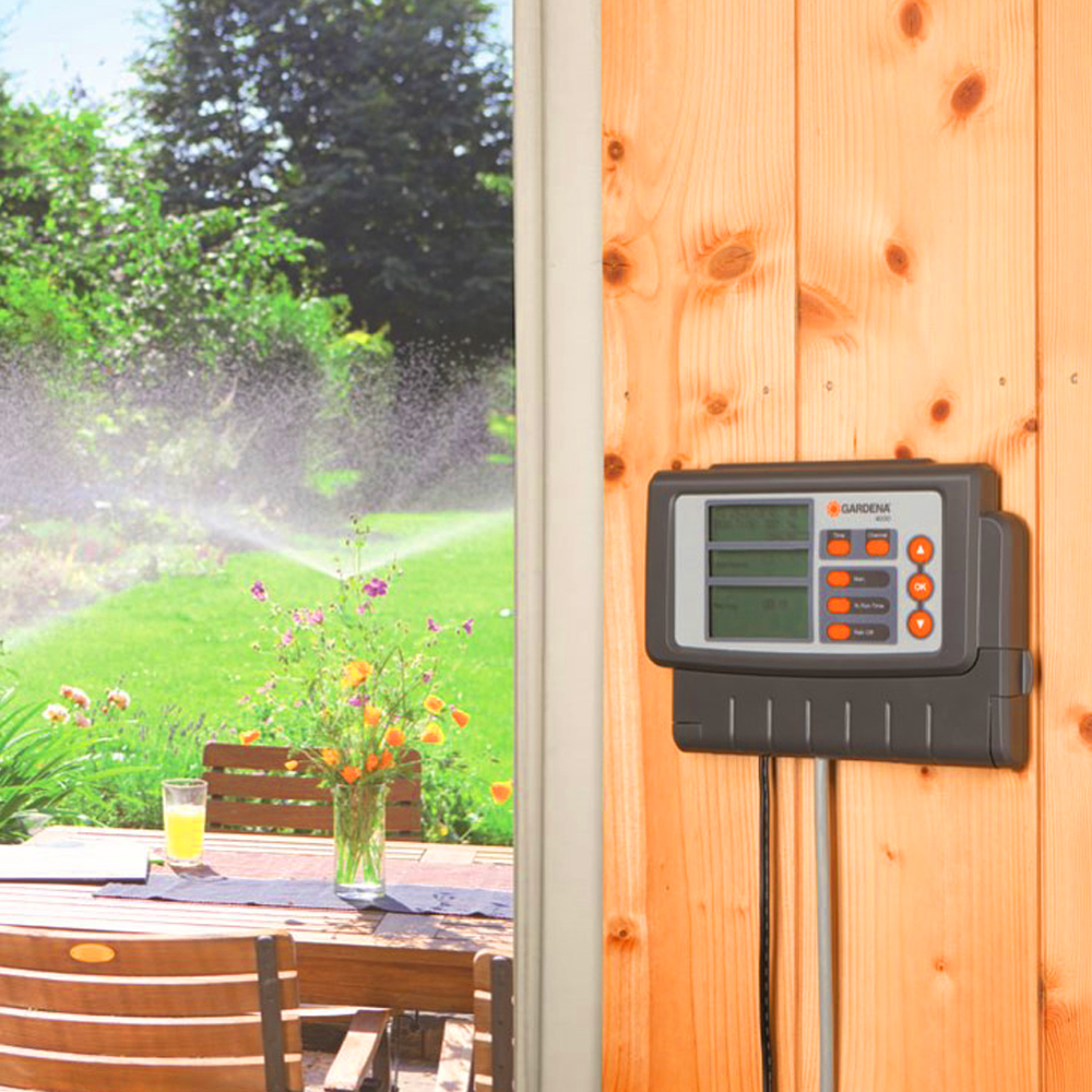 Система управления поливом GARDENA Classic (Гардена Классик) 4030 предназначена для автоматического управления работой крупных систем полива (в том числе выдвижных). Данная система управления применима в тех случаях, когда объем подаваемой воды недостаточен для одновременной работы всей системы, включающей в себя несколько систем полива. Помимо этого, в случае различной потребности в воде отдельных участков устройство осуществляет управление продолжительностью полива на отдельных каналах, обеспечивая оптимальный полив с учетом требований пользователя. Прибор рассчитан на подключение до четырех клапанов для полива 24 В, питается от сети 230 В. Преимущества: - возможность создавать и сохранять до трех необходимых программ полива для каждого клапана, что обеспечивает гибкость полива; - настройка дней и циклов полива по желанию (устанавливаемая периодичность: 24 часа, каждый второй день, каждый третий день, полив по четным и нечетным дням); - продолжительность полива может быть задана в пределах от 1 минуты до 3 часов 59 минут; - при необходимости начать полив в желаемое время подачу воды можно активировать вручную; - большой дисплей с четкими инструкциями для пользователя и яркой индикацией облегчает процесс программирования; - предусмотрена возможность подключения блока управления насосом через центральный канал, благодаря чему осуществляется управление насосом, используемым в качестве альтернативного источника воды; - система управления может использоваться внутри помещений, например, в гараже, а также на участках с защитой от дождя; - для надежной и бесперебойной эксплуатации системы управления поливом предусмотрена защита от сбоев в сети питания с помощью алкалиновой батареи 9 В; - для сокращения расхода воды к системе могут быть подключены датчик дождя или датчик влажности почвы, которые отключат систему при достаточной влажности почвы или с началом дождя; Все комплектующие к системе (в том числе и элемент питания) приобретаются отдельно.