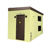 Железобетонный объёмный блок для БКТП и БРТП с трансформаторами свыше 1250кВА. Марка бетона: М400 с гидрофобными присадками. Сейсмостойкость: 9 баллов. Крыша обрабатывается гидроизоляционным морозостойким покрытием. ЖБ объёмный блок конструктивно состоит из плиты основания и верхнего элемента. Верхний элемент представляет собой единую прочную конструкцию, изготавливаемую с применением единой опалубки со смещаемыми бортами. Плита основания и верхний элемент соединяются цементным раствором и за счёт сварки закладных деталей. Строповка – верхняя.