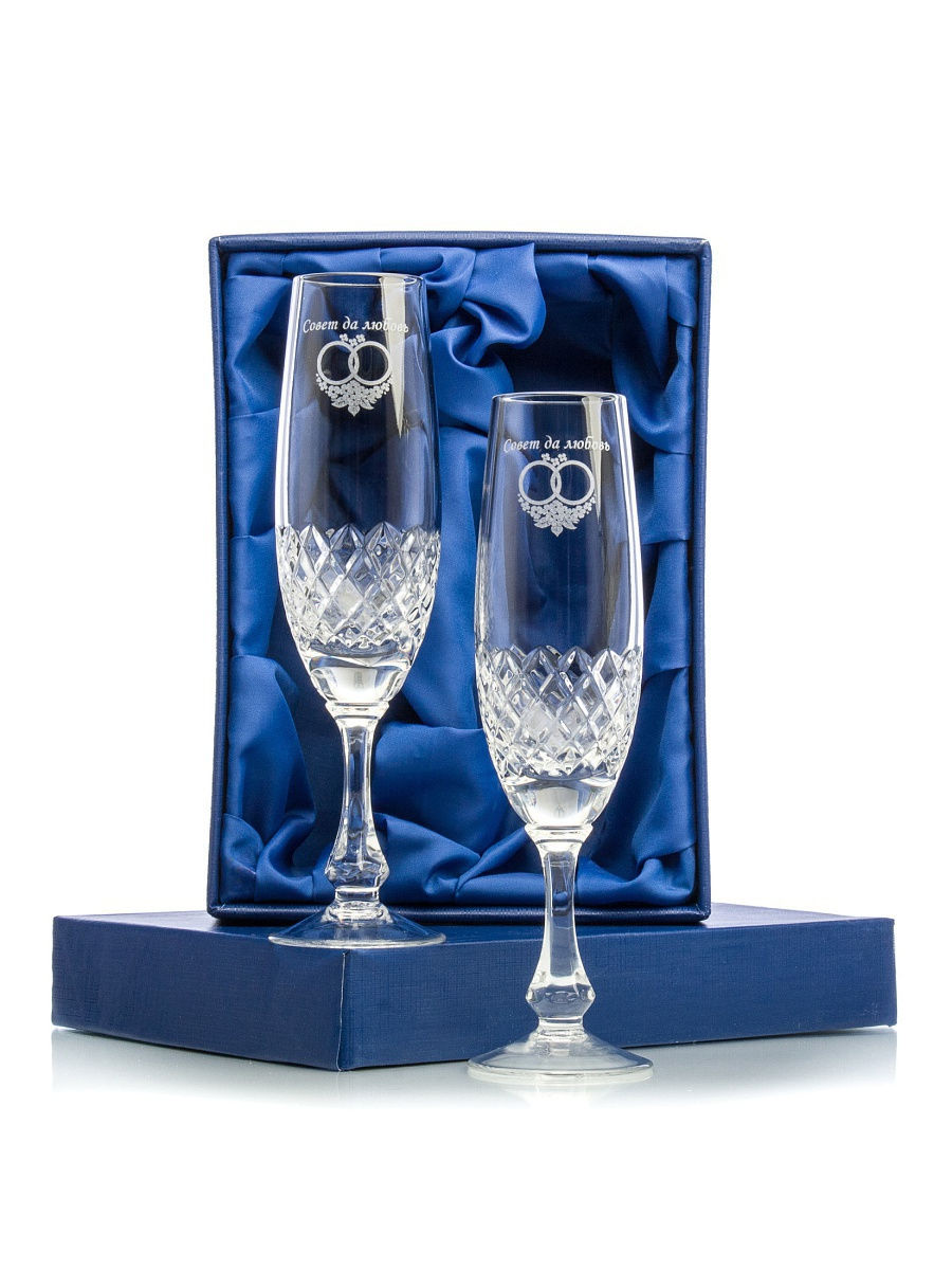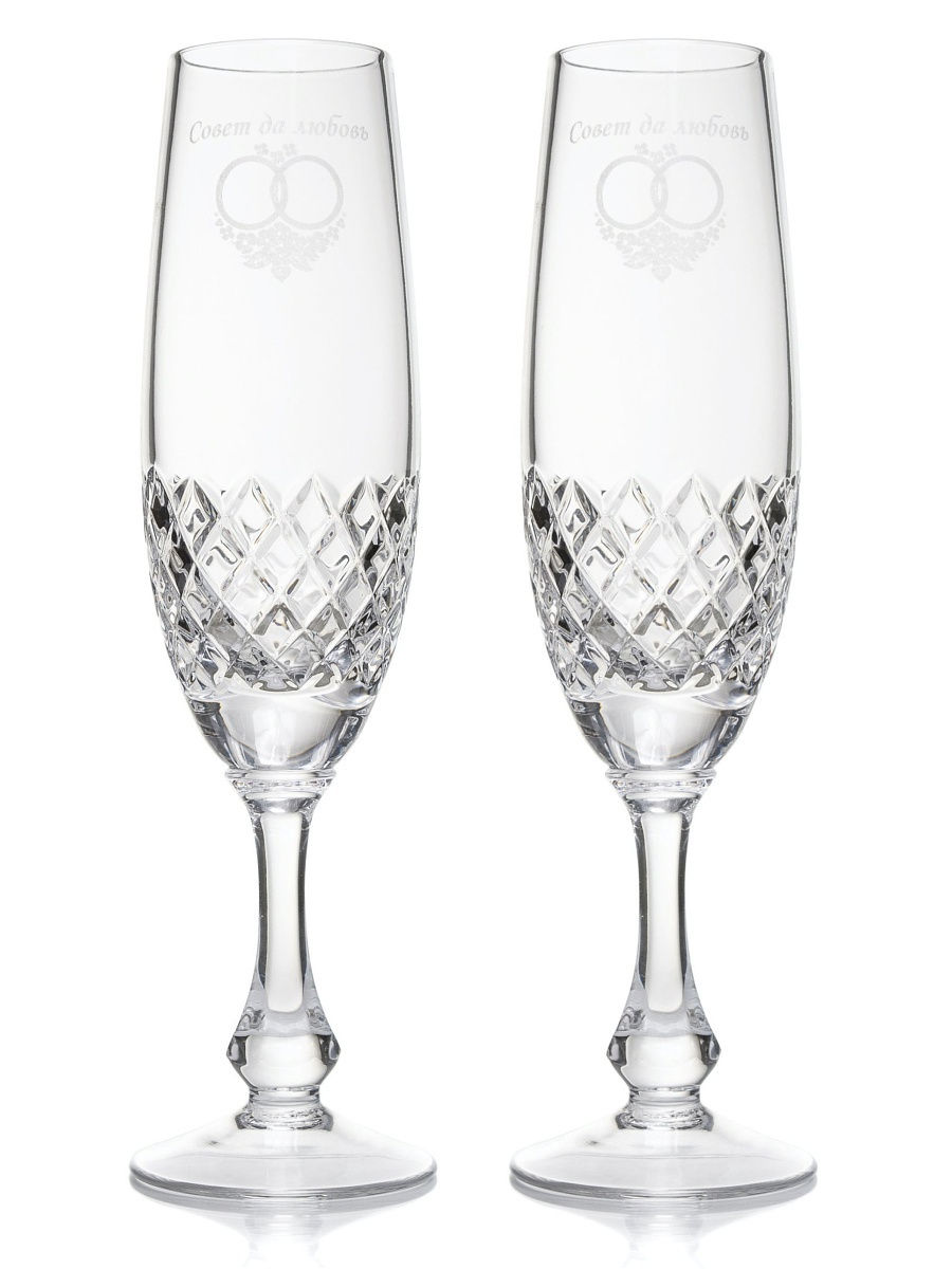 Классический хрусталь ручной работы. Набор из 2 бокалов 170 мл \"Совет да любовь\". Изящная форма изделия, резка, особый хрустальный звон и игра света - вот что делает хрусталь прекрасным дополнением к любому празднику и подарком. Напиток не изменит температуру (не нагреется от руки) благодаря очень низкой теплопроводности хрусталя. Набор упакован в подарочную упаковку.