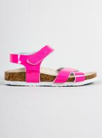 Босоножки с верхом из лакированной кожи и регулируемой застежкой-липучкой. Высота подошвы 2 см.