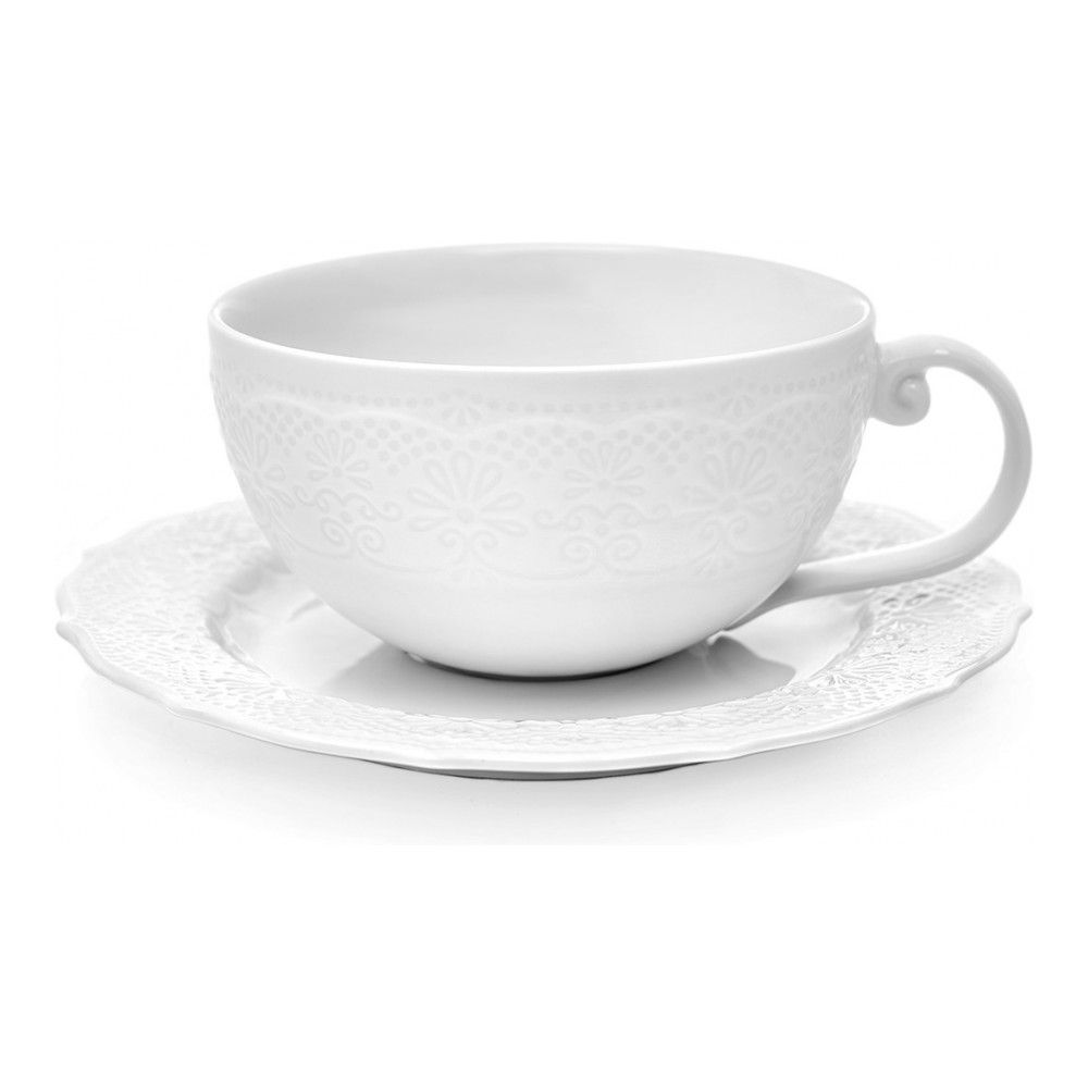 Дизайн коллекции Emily – это тонкое сплетение современного стиля и элегантной невесомости: молочно-белый фарфор украшен имитирующим кружева объемным узором.