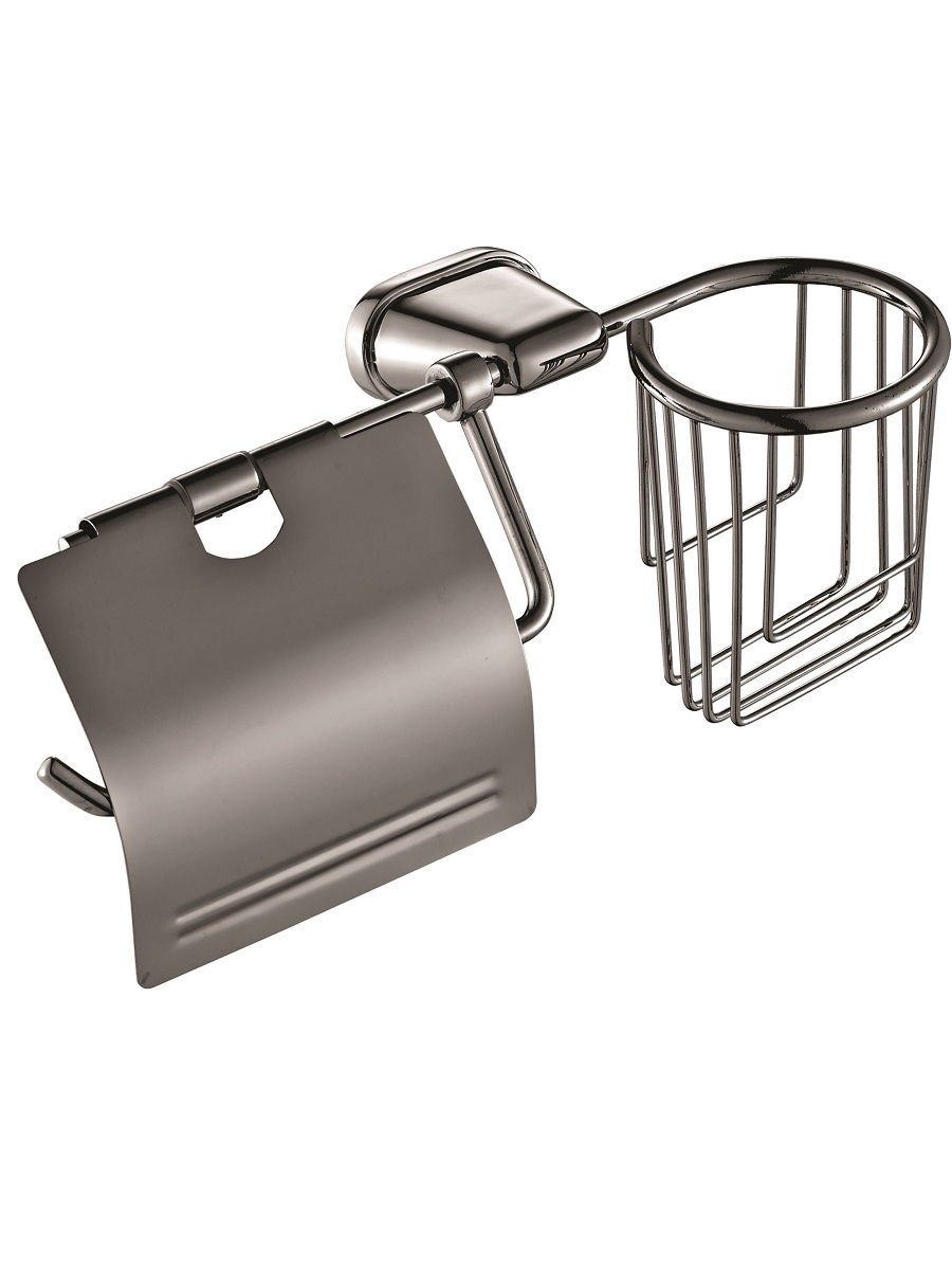 Настенный металлический держатель для туалетной бумаги с крышкой и корзиной для освежителя воздуха. Крепеж в комплекте.