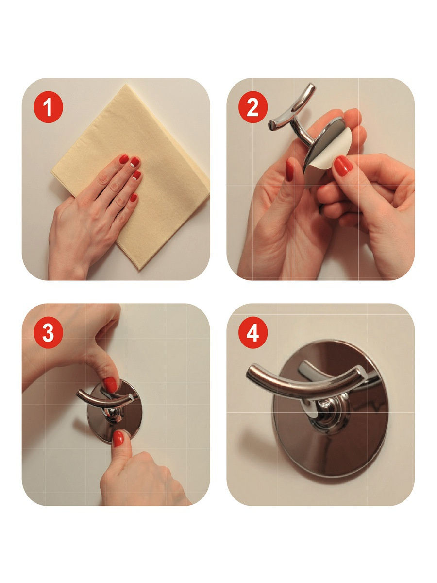 Аксессуары Kleber сделаны из латунного сплава. Данная серия крепится с использованием нанотехнологичной клейкой ленты. Крепление гарантированно выдерживает до 8 кг. Упаковка - двойной блистер.