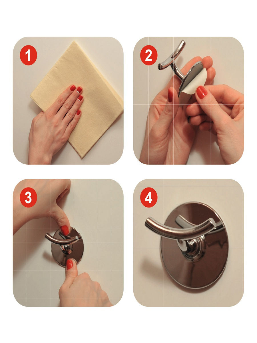 Аксессуары Kleber сделаны из латунного сплава. Данная серия крепится с использованием нанотехнологичной клейкой ленты. Крепление гарантированно выдерживает до 8 кг. Упаковка - двойной блистер.