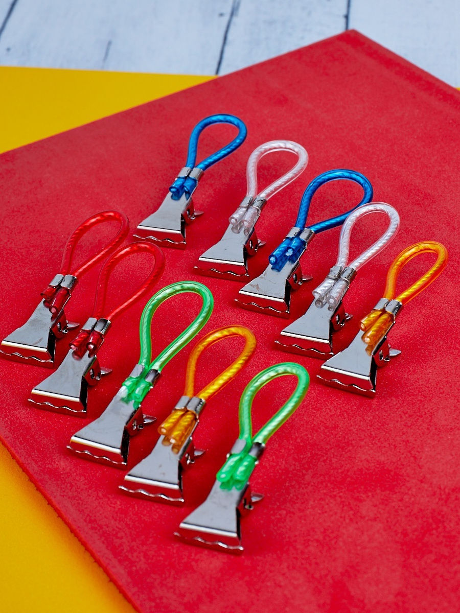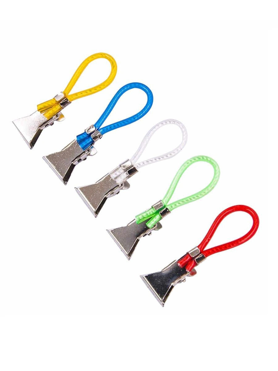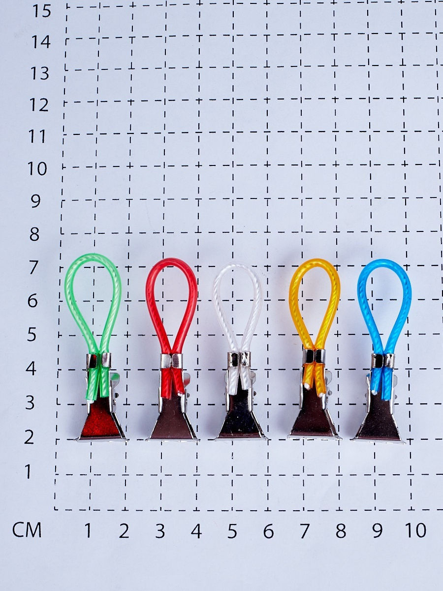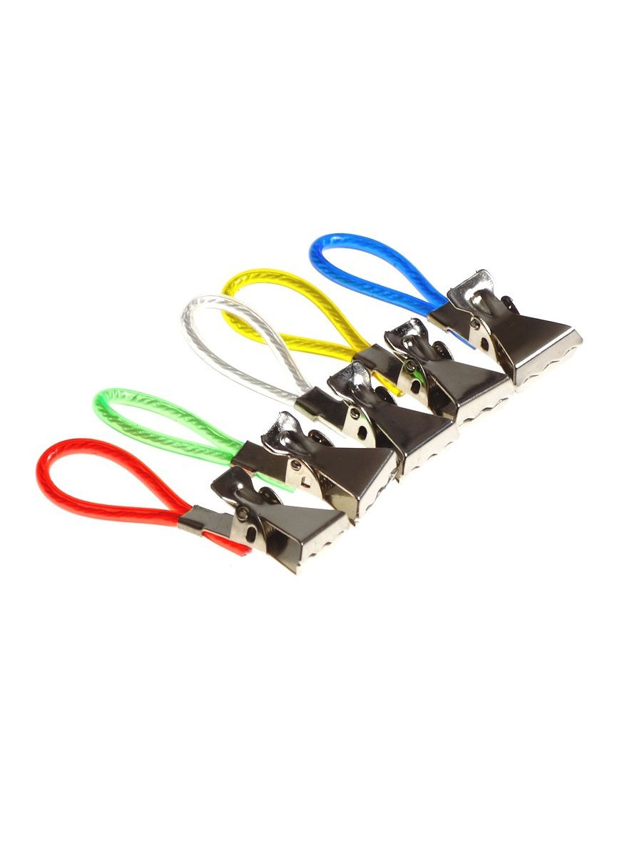 Яркий и компактный набор из 5 прищепок с разноцветными с петлями. Высота 5 см., ширина 1.5 см. Отлично подойдут для полотенца или мочалки. Стальной зажим надежно фиксирует изделие и не дает ему выскользнуть.